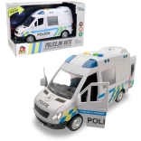 Dieser Polizeivan begeistert alle Kinder, die actionreiche Geschichten und Einsätze lieben. Das Fahrzeug fährt mit Schwungrad, verfügt über ein Blaulicht mit blauen Warnleuchten und spielt authentische tschechische Ansagen von Besatzung und Leitstelle ab – wie bei einem echten Polizeieinsatz. Öffnende Türen fördern realistisches Spiel und die Fantasie.