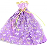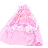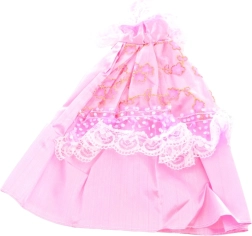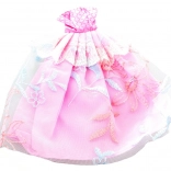 Spitzenverzierung, Glitzer und florale Motive verleihen der Puppe einen festlichen Look.