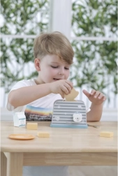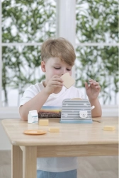 Der Holztoaster ist so konzipiert, dass er Kindern eine sichere und unterhaltsame Art des Küchenspiels bietet. Mit einem einfachen Design und einer robusten Struktur ist er ideal für Fantasiespiele und die Entwicklung motorischer Fähigkeiten.
