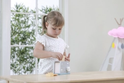 Das Spielen mit dem Toaster hilft, Koordinations- und motorische Fähigkeiten zu verbessern.
