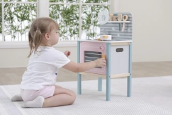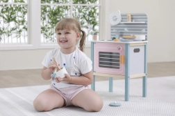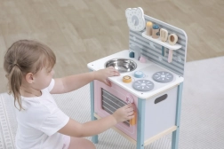 Die Küche ist für sicheres Spielen von Kindern ab drei Jahren konzipiert und fördert die Feinmotorik und das Nachahmungsvermögen.