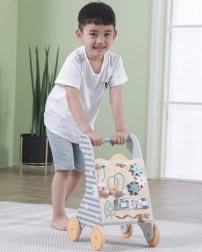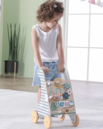 Der Lauflernwagen hilft, die motorischen Fähigkeiten der Kinder dank der sicheren Konstruktion und interaktiven Elemente zu entwickeln.