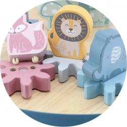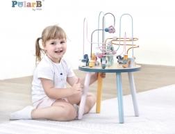 Das Perlenlabyrinth auf dem stabilen Holztisch lädt Kinder zum Entdecken ein. Bunte Formen und niedliche Tiere (Bär, Fuchs, Igel) motivieren zu Fingerbewegungen, präzisem Greifen und zum Erfinden eigener Geschichten. Ideal für den häuslichen „Montessori“-Stil des Lernens durch Spiel, der Geduld, Konzentration und Vorstellungskraft fördert.