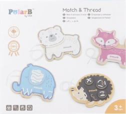 Das PolarB Match & Thread Set bringt Kindern Freude am Gestalten und Lernen. Die farbigen Holzkarten der Tiere haben glatte Kanten und ausreichend große Öffnungen für leichtes Auffädeln. Kinder trainieren Griff, Genauigkeit und logisches Denken, während sie die einzelnen Teile zusammensetzen und das Schnüren üben.