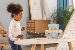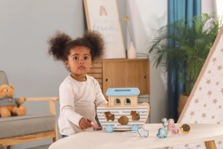 Enthalten ist ein vielfältiges Set aus Tieren und Formen, die in die passenden Öffnungen gesteckt werden. Fördert Formenerkennung, Geduld und Koordination.