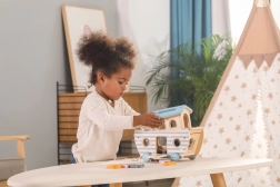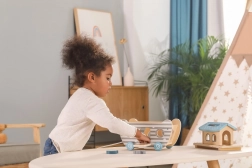 Hochwertiges Holz, abgerundete Kanten und angenehme Farben sorgen für sicheres Spielen auch für die Kleinsten. Ideal fürs Kinderzimmer und für unterwegs.