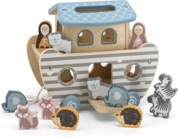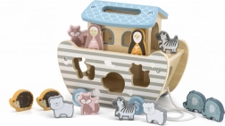 Mit 14 Teilen – Arche, Häuschen und einem Set von Tieren – lernen Kinder Formen, Farben und Paare zu unterscheiden und trainieren gleichzeitig Hand-Auge-Koordination und logisches Denken. Das Spielzeug ist ab 18 Monaten geeignet und dank abgerundeter Kanten sicher für kleine Entdecker.
