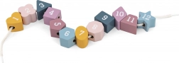 Jedes Teil hat ein Loch zum Durchfädeln der Schnur – trainiert Griff, Hand-Auge-Koordination und Geduld.