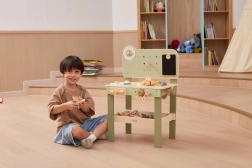 Die stylische Kinderwerkbank in Natur-Grün bietet ein realistisches Werkstatterlebnis in sicherer, hölzerner Ausführung. Kinder können schrauben, Räder am Auto wechseln, Teile „sägen“, Zahnräder zusammensetzen und Ursache-Wirkungs-Prinzipien entdecken. Dank des übersichtlichen Stauraums sind alle Teile und Werkzeuge stets griffbereit.