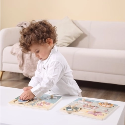 Holzpuzzles und Steckspiele