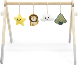 Der Spielbogen kann problemlos auf Teppich, Spielmatte, Boden oder im Bettchen platziert werden. Die Spielzeuge rasseln, knistern und quietschen und unterstützen so die Entwicklung von Hand-Auge-Koordination und natürlicher Neugier. Die sicheren Oberflächen sind mit kinderfreundlichen Farben behandelt.