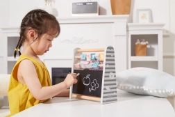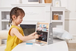Inklusive kleiner Tafel und staubfreier Kreide zum Schreiben von Zahlen, ersten Aufgaben und eigenen Zeichnungen – ideal zur Förderung der Kreativität.
