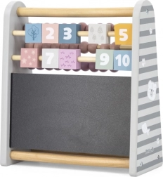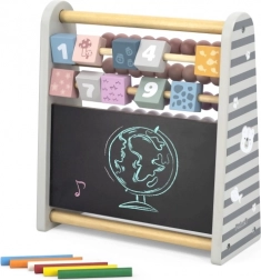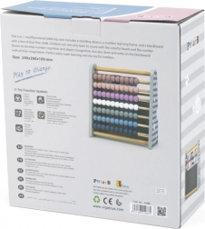 Dieses multifunktionale 3-in-1-Holzrechen verbindet Lernen und Spiel. Mit den bunten Perlen üben Kinder das Rechnen, die umklappbaren Zahlenwürfel unterstützen das Erkennen von Ziffern und einfachen Beziehungen, und auf der Kreidetafel können sie erste Aufgaben und Bilder schreiben oder malen.