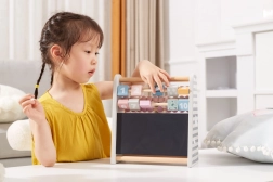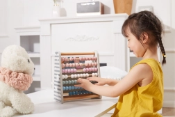 Bunte Perlen und umklappbare Zahlenwürfel motivieren Kinder, die Grundlagen der Mathematik auf natürliche und spielerische Weise zu entdecken.