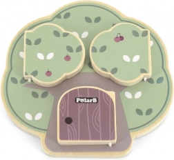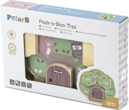Das Holzspiel Peek‑a‑Boo Baum von POLARB ist für spielerisches Entdecken konzipiert. Kinder schieben und drehen Teile, klopfen an Türchen und finden die niedlichen Bewohner des Baumes – Eulchen, Eichhörnchen oder Igel. Dieses interaktive Spiel fördert auf natürliche Weise die Auge‑Hand‑Koordination und unterstützt die Neugier.