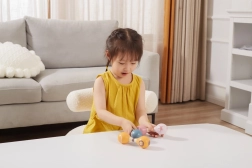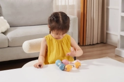Die ergonomische Form passt in kleine Kinderhände, unterstützt die Hand-Auge-Koordination und die ersten Versuche des Schüttelns und Rollens.