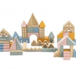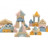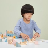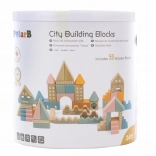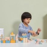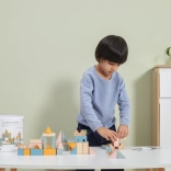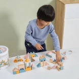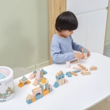Dieser hochwertige Holzbaukasten im Eimer enthält 50 sorgfältig verarbeitete Teile in angenehmen Pastellfarben. Kinder bauen damit Häuschen, Türmchen und ganze Städte und entwickeln dabei Koordinationsfähigkeiten, logisches Denken und Kreativität.