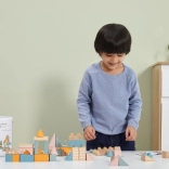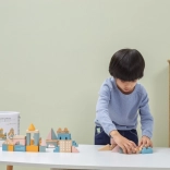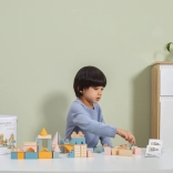Vielseitige Formen und Größen (ca. 2,5–9 cm) ermöglichen es Kindern, Häuser, Türme und ganze Städte zu bauen und gleichzeitig das räumliche Wahrnehmen zu trainieren.