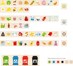 Dieses Lernspielzeug von VIGA ist ideal für Kinder, die die Grundlagen der Mülltrennung erlernen. Es wird mit einer Holzbox geliefert, die Öffnungen zum Einwerfen der Plättchen besitzt, sowie einer Tafel mit verschiedenen Abfallbehältern. Außerdem sind 50 Holzplättchen mit Abfallmotiven enthalten, deren Farben den jeweiligen Recyclingkategorien entsprechen.