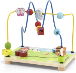 Entdecken Sie den Spaß mit dem Holzlabyrinth - Bauernhof, bei dem farbenfrohe Perlen entlang gebogener Metalldrähte geschoben werden können. Kinder werden dieses Spielzeug wegen seines interaktiven Designs lieben, das die Sinne stimuliert und Kreativität fördert.