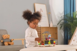 Das Spielzeug zieht mit seinen leuchtenden Farben und interessanten Perlenformen die Aufmerksamkeit der Kinder auf sich und motiviert sie zum Entdecken.