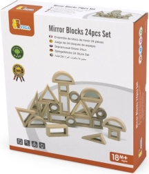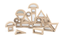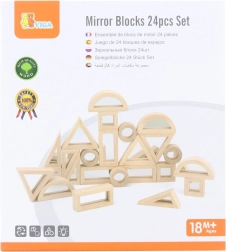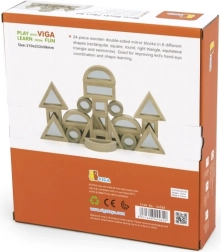 Das Set enthält 24 beidseitige Holzsteine mit Spiegeln, die den Kindern helfen, die Hand-Augen-Koordination zu entwickeln und verschiedene Formen zu erkennen. Im Set finden Sie sechs verschiedene Formen, darunter rechteckige, quadratische, runde, rechtwinklige Dreiecke, gleichseitige Dreiecke und halbkreisförmige Formen. Dank der Spiegel entwickeln Kinder auch ein Gefühl für ihr eigenes "Ich", was ihr Selbstbewusstsein stärkt.