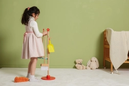 Dank der verschiedenen Reinigungswerkzeuge verbessern die Kinder ihre Motorik und das Gleichgewicht beim Spielen.