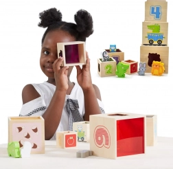 Dieses fantastische Set enthält sechs Blöcke unterschiedlicher Größe, die jeweils einzigartige Motive haben. So lernen Kinder, Zahlen, Formen, Farben, Größen und Tiere zu unterscheiden. Die Blöcke können einfach ineinandergesteckt oder aufeinandergestapelt werden, was den Kindern hilft, das Konzept von Anordnung und Reihenfolge zu verstehen.