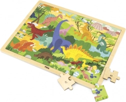 Schenken Sie Kindern spielerisches und lehrreiches Puzzeln mit einem Holzpuzzle im Dinosauriermotiv. Dank der 48 Teile ist es ideal als erstes „größeres“ Puzzle, das die Fähigkeiten und das Selbstvertrauen kleiner Baumeister Schritt für Schritt stärkt. Die Teile sind robust, liegen gut in der Hand und lassen sich bequem auf der Holzplatte mit Rahmen platzieren.