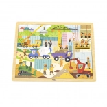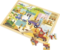 Dieses hochwertige Holzpuzzle mit Baustellenmotiv ist die ideale Wahl für das erste größere Puzzle. Dank 48 präzise geschnittener Teile üben Kinder die Auge-Hand-Koordination und lernen Formen und Farben zu erkennen. Die stabile Holzunterlage hält das Bild zusammen und erleichtert die Handhabung.