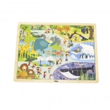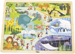 Mit 48 Teilen ist das Puzzle ein hervorragender Schritt zwischen einfachen Steckpuzzles und anspruchsvolleren Puzzles. Es unterstützt Koordinationsfähigkeiten, konzentriertes Wahrnehmen sowie das Kennenlernen von Zootieren.