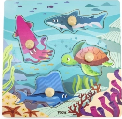 Holz-Meerespuzzle von der Marke Viga sind ideales Spielzeug zur Förderung manueller Fähigkeiten und zur Hand-Auge-Koordination bei Kindern ab 12 Monaten. Sie unterstützen auch das Gedächtnistraining, logisches Denken und Konzentration.