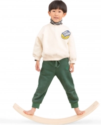 Die gewölbte Form regt Kinder zum Schaukeln, Stehen und Posieren an und fördert so Koordination, Stabilität und die Körpermitte – sicher und spielerisch.