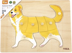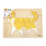 Die robuste Holzplatte und glatt geschliffene Kanten sorgen für sicheres, langlebiges Spiel – zu Hause und im Kindergarten. Das klare Hundemotiv lädt zum Puzzeln ein.