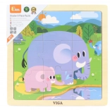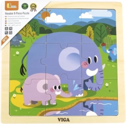 Das klassische Holzpuzzle mit fröhlichem Elefantenmotiv ist das ideale erste Puzzle für die Kleinsten. Die stabilen Teile lassen sich leicht greifen und in die beiliegende Platte einsetzen, die bei der Orientierung hilft und das Bild zusammenhält.