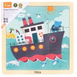 Einfache Formen und kräftige Farben des Schiffs- und Meermotivs unterstützen erste Puzzle-Erfolge und die visuelle Wahrnehmung.