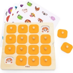 Das Holz-Memory-Spiel von Viga verbindet klassisches Memo mit hochwertiger Verarbeitung und attraktiven Illustrationen. Kinder heben die Abdeckungen an, decken Bilder auf und suchen passende Paare – eine einfache Mechanik, die visuelles Gedächtnis, Aufmerksamkeit und Fokussierung hervorragend trainiert. Dank der austauschbaren Karten lassen sich die Motive leicht variieren, und das Spiel bleibt immer spannend.
