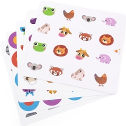 Enthalten sind 10 beidseitige Karten mit vielfältigen Motiven (Tiere, Gegenstände, Pflanzen). Sie lassen sich einfach wechseln und Themen sowie Schwierigkeitsgrad an das Alter des Kindes anpassen.