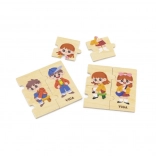 Dieses hochwertige, hölzerne Lernspielzeug vermittelt Kindern den richtigen Ablauf beim Anziehen durch das Zusammensetzen aufeinanderfolgender Teile mit Bildern eines Jungen und eines Mädchens. Jedes Teil hat ein einzigartiges Motiv und passt exakt zusammen, sodass Kinder beim Spielen ihr Verständnis für Zusammenhänge sowie ihre Geduld trainieren.