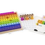 Diese hochwertige hölzerne Lerntafel ist ideal für Kinder ab 3 Jahren. Sie fördert das Erkennen von Buchstaben und Zahlen, das Bilden von Wörtern sowie das Erstellen mathematischer Aufgaben. Die Unterseite des Tabletts dient als trockenen abwischbare Tafel zum Zeichnen und Schreiben, was die Feinmotorik und Kreativität unterstützt.