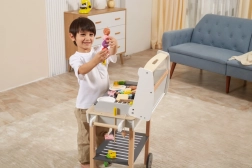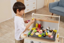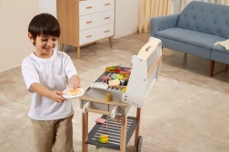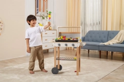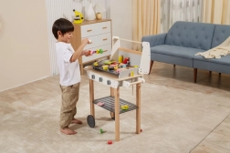 Der Kindergrill von VIGA bietet ein authentisches Grillerlebnis in einer sicheren, hochwertigen und stabilen Holzkonstruktion. Kinder können Spieße, Burger, Hotdogs oder Sandwiches zubereiten und „Gäste“ wie auf einer echten Gartenparty bedienen. Drehknöpfe mit Klick-Effekt, abnehmbare Haube und ausziehbarer Rost fördern realistisches Spiel und Geschicklichkeit.