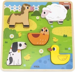 VIGA verwendet hochwertiges Holz und glatte Oberflächen für sicheres Spielen. Die dicken Teile liegen gut in der Hand und sind damit perfekt für kleine Kinderhände. Das Puzzle fördert Selbstständigkeit, Konzentration und kreatives Spiel.