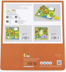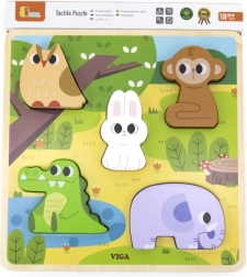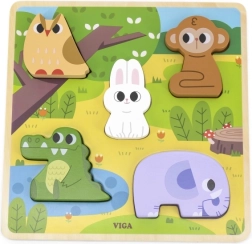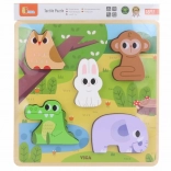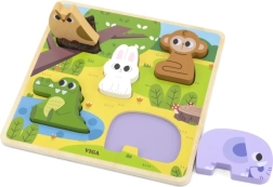 Die Holz-Einlegepuzzle von VIGA mit Waldtieren ist das ideale erste Puzzle für die Kleinsten. Die Aufgabe besteht darin, die Formen der Tiere korrekt in die markierten Aussparungen der farbigen Unterlage einzuordnen. Die Teile liegen angenehm in kleinen Händen und die robuste Holzkonstruktion garantiert eine lange Lebensdauer.