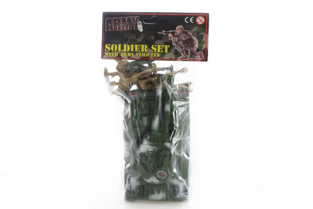 Dieses Set aus Plastiksoldaten mit Panzer bietet Kindern stundenlangen Actionspaß. Dank der kompakten Maße ist es ideal für zu Hause und unterwegs. Der Panzer mit einer Größe von ca. 18 × 9 × 7 cm lässt sich leicht bedienen und wird durch ein Set von Soldaten ergänzt, um eigene Kampfszenen zu gestalten.
