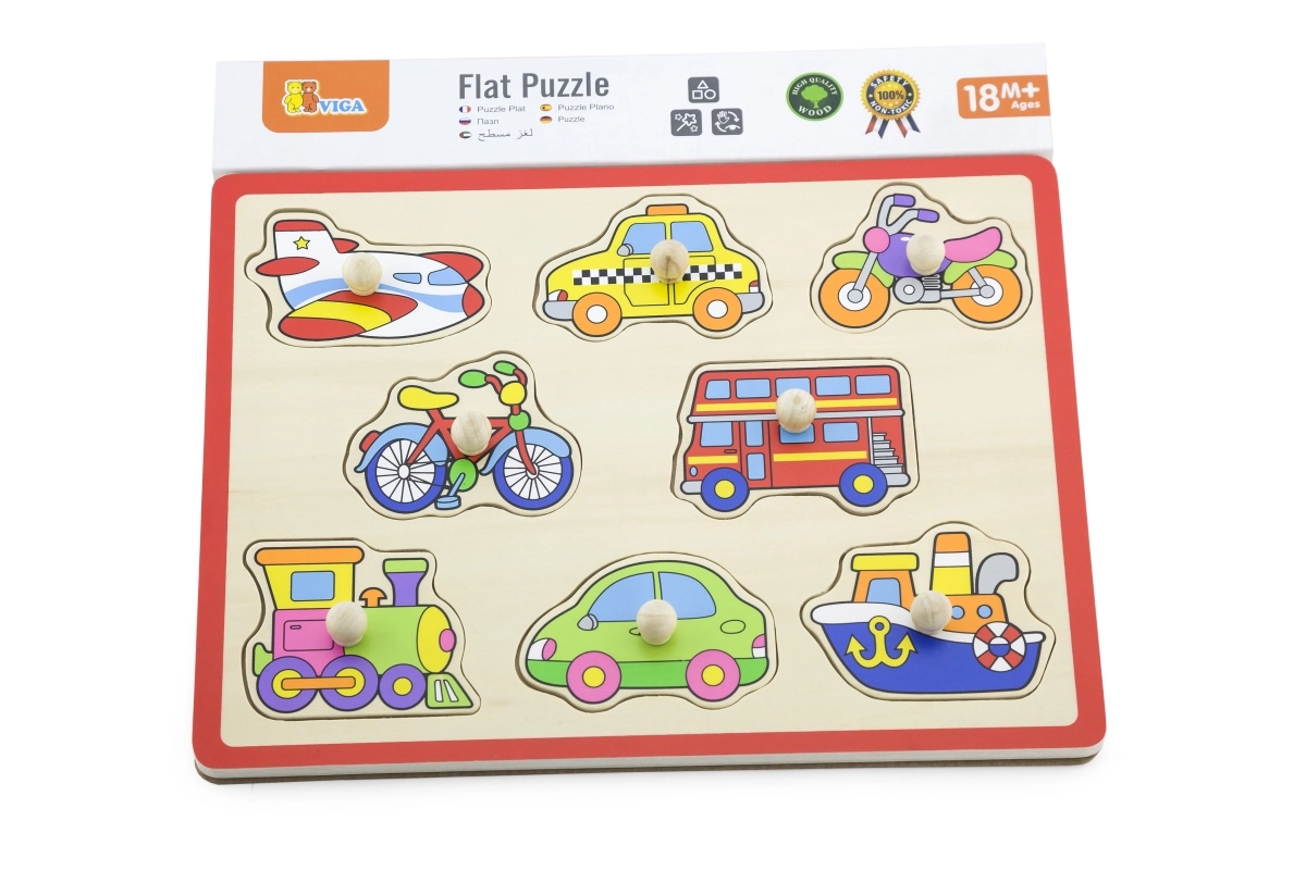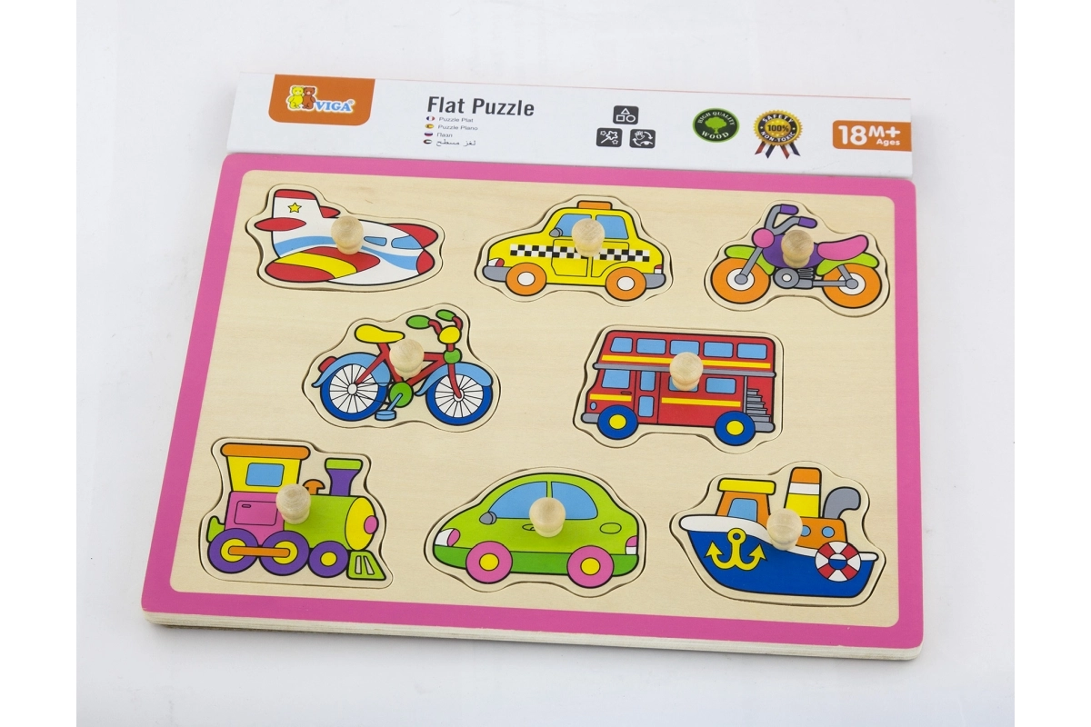 Dieses hochwertige Holzpuzzle mit Fahrzeugmotiven (Flugzeug, Taxi, Fahrrad, Bus u. a.) bietet eine spielerische Lernmöglichkeit. Die Teile mit praktischen Griffen passen in vorgefräste Öffnungen, sodass Kinder ihre Geschicklichkeit und logisches Denken ganz natürlich trainieren. Die stabile Holzplatte mit den Maßen ca. 30 × 22,5 cm ist robust und für den täglichen Gebrauch geeignet.