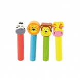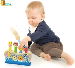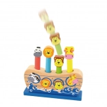Die stabile Holzbasis in Schiffsform und vier Holzstäbchen mit Tierchen (Giraffe, Äffchen, Löwe, Zebra) schaffen eine sichere und langlebige Spielumgebung. Die ansprechende Verpackung eignet sich als ideales Geschenk für Kleinkinder und Vorschulkinder.