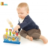 Entdecken Sie einfachen, fesselnden Spaß mit dem Holzspielzeug von Viga, bei dem Kinder durch Drücken des Kopfes die Tierchen wieder nach oben „katapultieren“. Dieses actionreiche Spiel fördert hervorragend die Feinmotorik, die Geduld und das Prinzip Aktion–Reaktion. Dank der kräftigen Farben und der übersichtlichen Ausführung üben Kinder spielerisch die Farbdifferenzierung sowie das Benennen von Tieren.