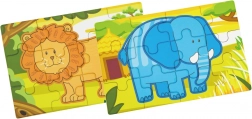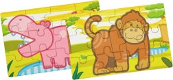 Einfache Formen und kräftige Farben von Löwe, Elefant, Nilpferd und Äffchen motivieren Kinder zum Puzzeln und fördern die visuelle Wahrnehmung.