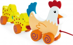 Die Henne mit den Küken wippt fröhlich beim Ziehen, was Kinder ganz natürlich zu Bewegung und Entdeckungstouren anregt.