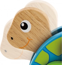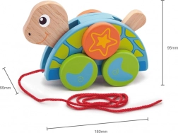 Diese farbenfrohe hölzerne Zieh-Schildkröte ist so gestaltet, dass sie Kinder zum Laufen motiviert, die Bewegungskoordination unterstützt und spielerisch die Fein- und Grobmotorik fördert. Die robuste Holzausführung und angenehm abgerundete Kanten sorgen für sicheres Spielen, während kräftige Farben und ein verspieltes Design die visuelle Wahrnehmung anregen.
